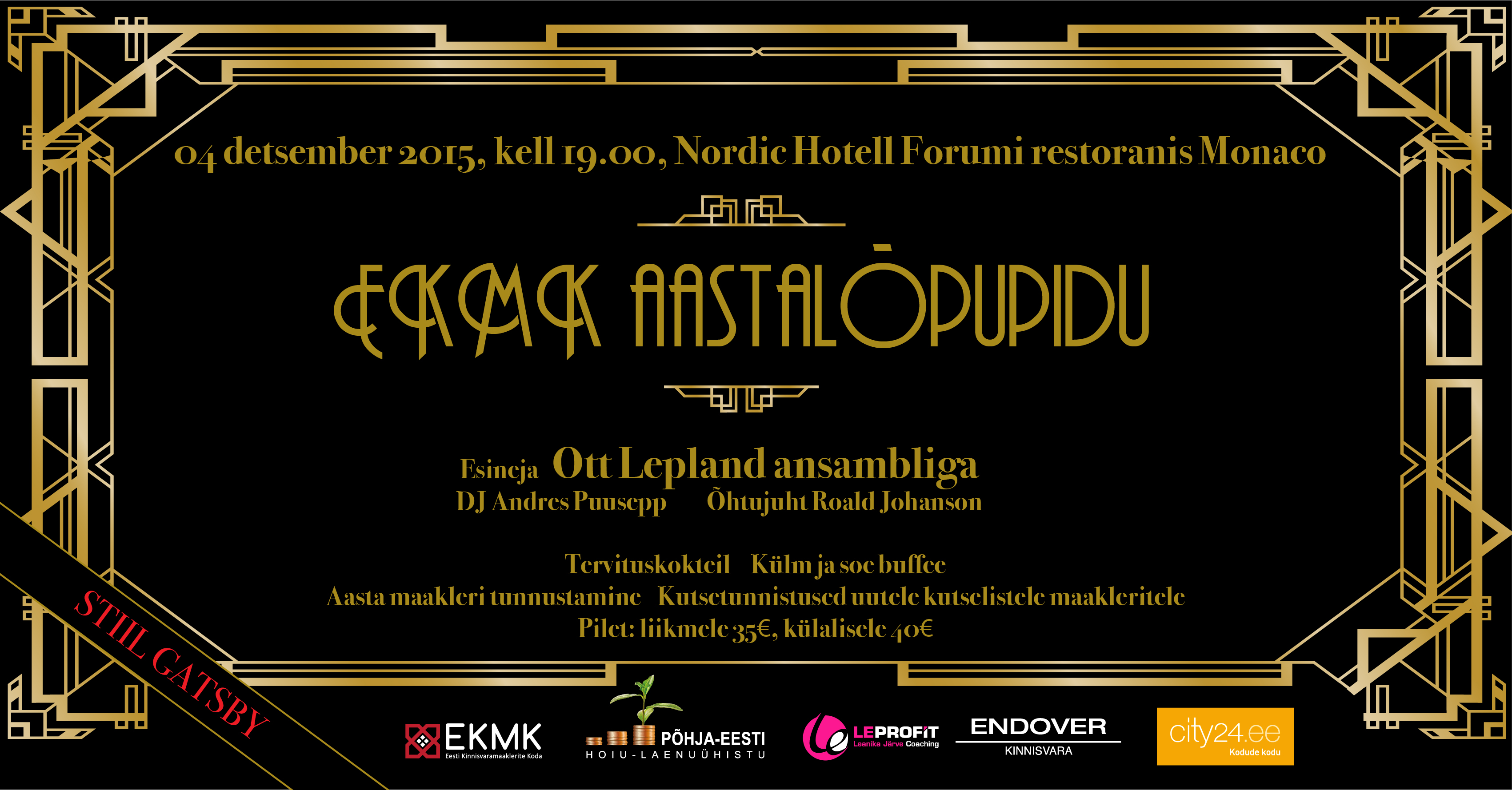 Seekordset pidu toetavad ja aitavad korraldada Põhja-Eesti Hoiu-laenuühistu, Endover Kinnisvara, LEPROFIT ja City24.ee.