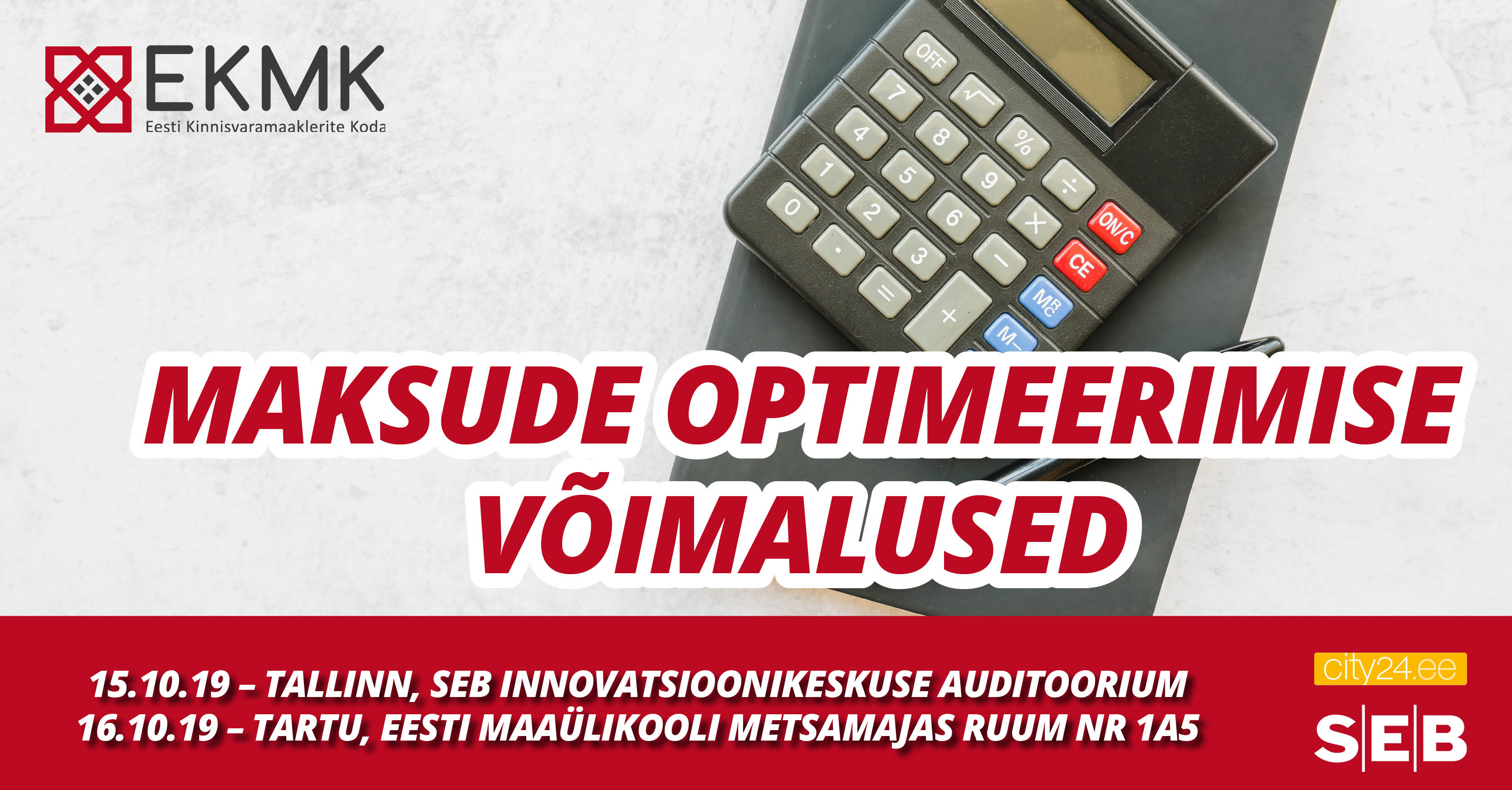 EKMK Kinnisvarakoolitus „Maksude optimeerimise võimalused“ Tallinnas 15.10.19 ja Tartus 16.10.19