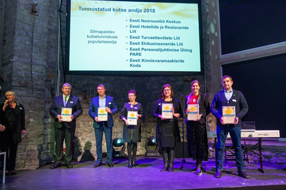 SA Kutsekoda tunnustas kutsesüsteemi 20. juubelivastuvõtul eeskuju väärivaid kutse andjaid, kes on viimasel viiel aastal teinud tähelepanuväärset tööd kutsetunnistuste tutvustamisel. Teiste hulgas pälvis tiitli „Tunnustatud kutse andja 2018, silmapaistev kutsetunnistuste populariseerija“ ka Eesti Kinnisvaramaaklerite Koda.