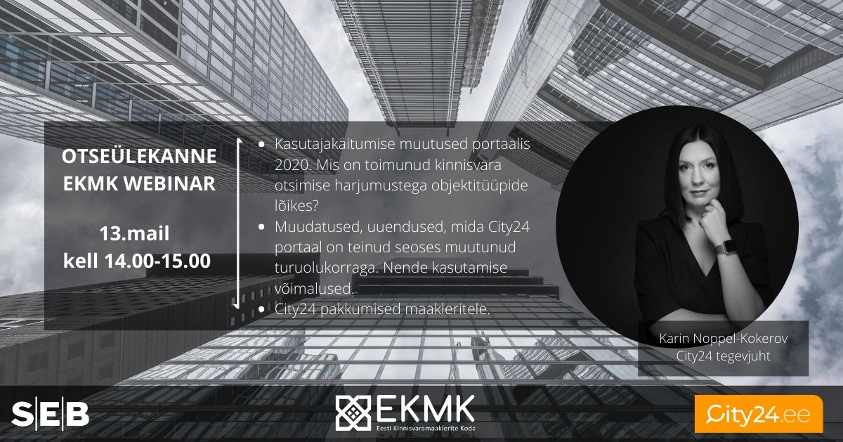 Meie esimese webinari esinejaks on meie pika-ajaline koostööpartner City24. Karin Noppel-Kokerov räägib meile alljärgnevatel teemadel: